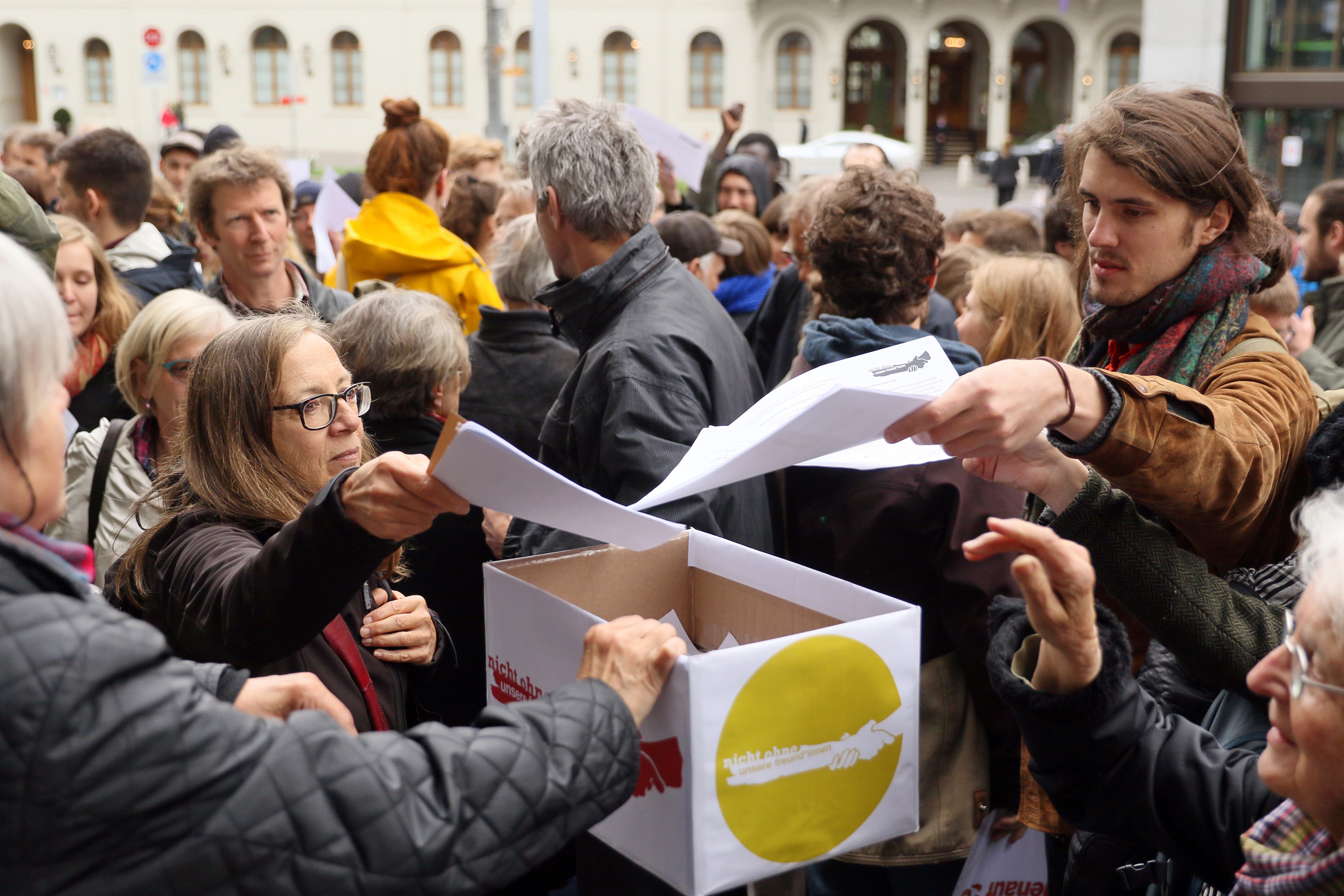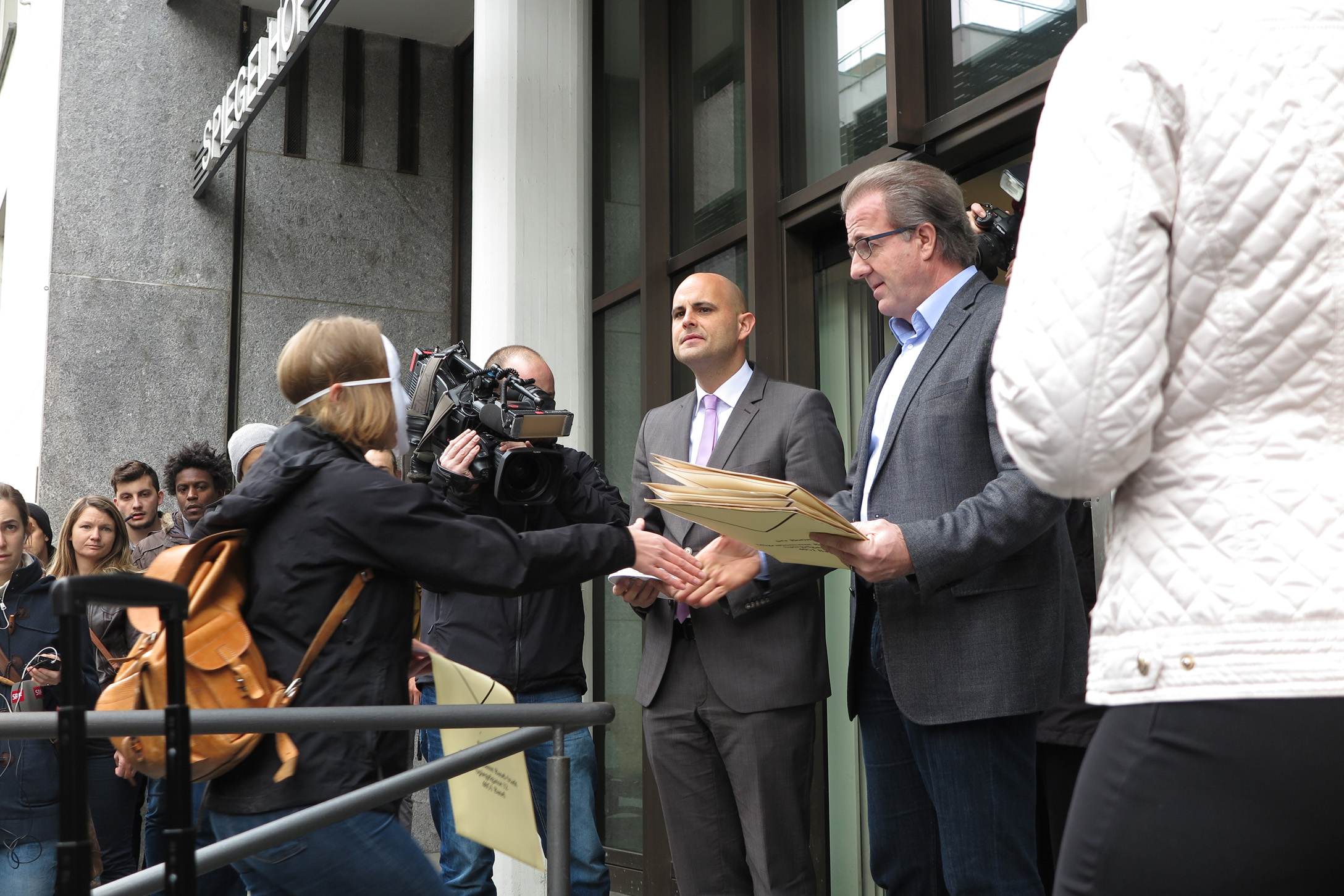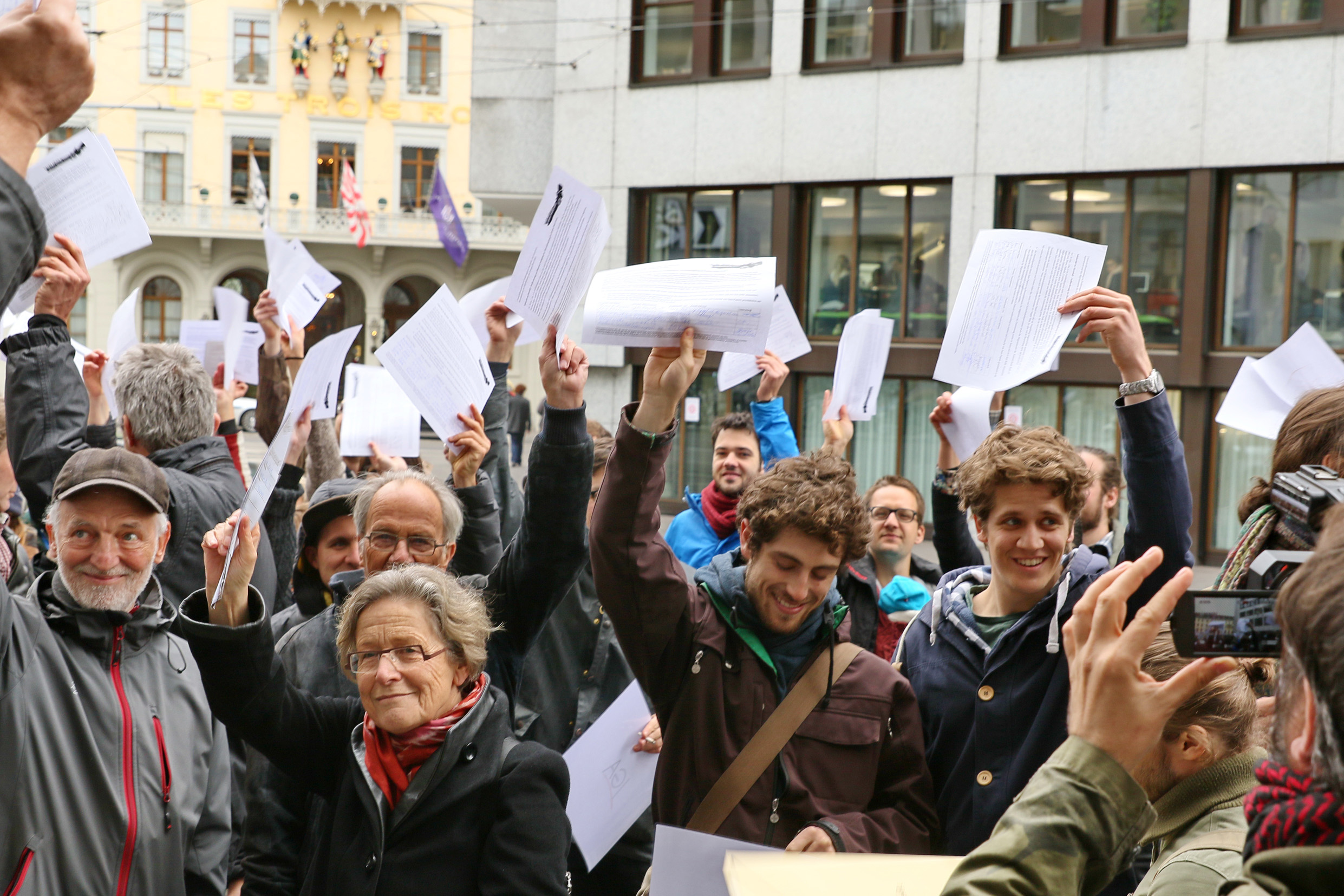 Es freut uns sehr, dass sich so viele Menschen solidarisch zeigen und uns den Rücken stärken. Wir haben 3000 Unterschriften gesammelt und 30 Organisationen unterstützen unser Anliegen. Wir übergeben ihnen heute auch die Unterschriften und die Logos der Organisationen.